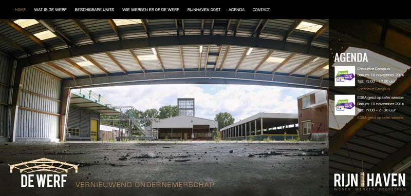 Gisteren is de website van De Werf online gegaan. De werf, een industrieel complex gelegen aan de Rijnhaven, is sinds 2015 bezit van gemeente Alphen aan den Rijn om ruimtelijke ontwikkeling in het Rijnhavengebied mogelijk te maken. Op het terrein staat een variëteit aan gebouwen, waarvan de mogelijkheden erg verschillen. Insteek is om het complex zodanig te ontwikkelen dat ondernemers de ruimte wordt geboden om de huidige gebouwen op te knappen, te hergebruiken of compleet te vernieuwen. Creatieve en ambachtelijke bedrijven die passen binnen een dynamische omgeving, zijn de gewenste partijen die het karakter en de levendigheid van het terrein kunnen versterken.