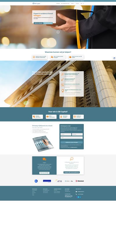 Eén van de projecten welke afgelopen week online zijn gegaan, is de nieuwe website van EBI Capital. EBI Capital is een beleggingsonderneming gericht op medisch specialisten, ondernemers, particuliere beleggers en families en instituten. en opereert vanuit de filosofie van evidenced-based beleggen. Zij geloven erin dat beleggen op basis van de meest moderne wetenschappelijke inzichten de best mogelijke rendements-risico karakteristieken oplevert. In Nederland zijn zij uitgegroeid tot de specialist en pionier met betrekking tot deze hard groeiende beleggingsfilosofie. Het team is inmiddels uitgebreid tot zes adviseurs.