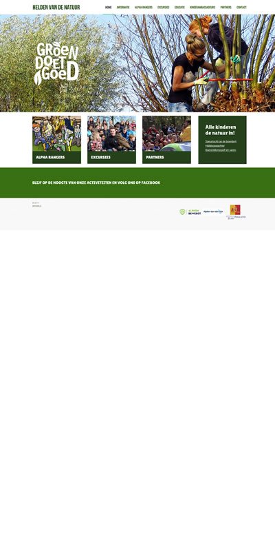 Woensdag 30 januari 2019 is de nieuwe website van Helden van de natuur online gegaan. Dé site van Groen doet goed van de gemeenten Alphen en Rijswijk. Op deze site vind men informatie over verschillende groenactiviteiten die je met kinderen kan doen in Alphen aan den Rijn en Rijswijk. Spelen in de natuur is leuk en gezond. Het is voor kinderen heel goed om vaker in het groen te zijn: ze bewegen meer, voelen zich prettiger en leren door te ontdekken. Uit onderzoek is gebleken dat kinderen die vaak in het groen zijn, minder vaak ziek zijn en betere leerprestaties hebben. Een natuurbeleving op jonge leeftijd heeft de rest van hun leven invloed op hun band met de natuur. Als we kinderen willen raken met natuur, dan moeten we ze raken waar zij zijn. ‘Plukjes’ groen in de stad, groot en klein, kunnen bijdragen aan nieuwsgierigheid naar de natuur. Op de website van Helden van de natuur is uitgebreide informatie te vinden. De website is ontwikkeld in opdracht van Reclamebureau DeGroep.