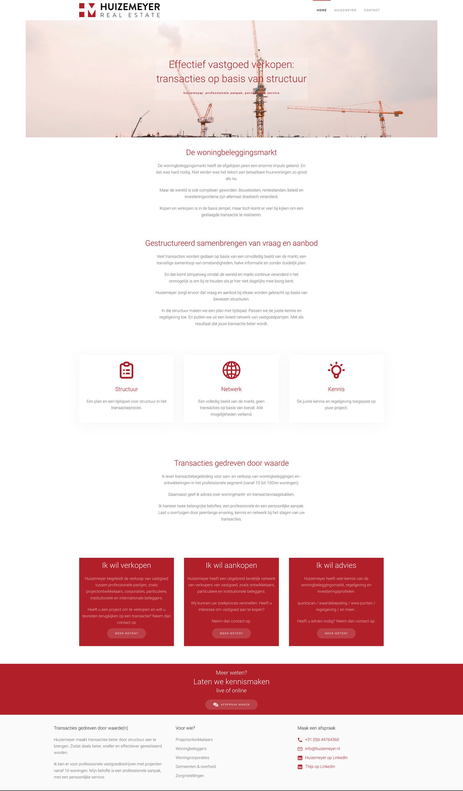 Vandaag is de website van Huizemeyer online gegaan. Huizemeyer begeleidt de verkoop van vastgoed tussen professionele partijen, zoals projectontwikkelaars, corporaties, particuliere, institutionele en internationale beleggers. Daarnaast geeft Huizemeyer advies over woningmarkt- en transactievraagstukken.