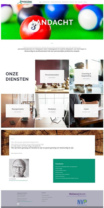 Vandaag, dinsdag 4 april 2019, is de nieuwe website van Slingerland & Partners online gegaan. Slingerland & Partners biedt structurele oplossingen op het gebied van personeelsadvies en mediation voor middelgrote en kleine bedrijven. De werkwijze is deskundig en professioneel met een persoonlijke praktische aanpak. De website geeft informatie over de diensten waarvoor het bedrijf kan worden ingeschakeld. De website straalt de kracht van het bedrijf uit: klein genoeg om flexibel te zijn en groot genoeg om deskundig te zijn.