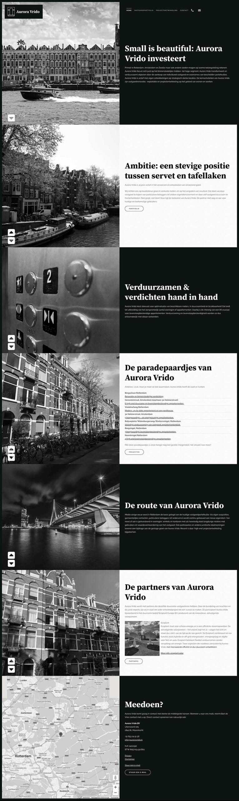 Vandaag is de nieuwe website van Aurora Vrido online gegaan.  Aurora Vrido is al jaren actief in het verwerven en ontwikkelen van onroerend goed. Zij richten zich op kwalitatieve groei in vierkante meters én op het vergroten van resultaat. Dat doen ze door vastgoed te kopen van particuliere beleggers (of andere eigendomsvormen) en door zelf vastgoed duurzaam te (her)ontwikkelen. Niet groot, niet klein! Daar ligt de toekomst van Aurora Vrido. Dé partner met oog en oor voor huidige en toekomstige gebruikers. Op de website is uitgebreide informatie te vinden over de activiteiten en uiteraard over de vastgoedportfolio.