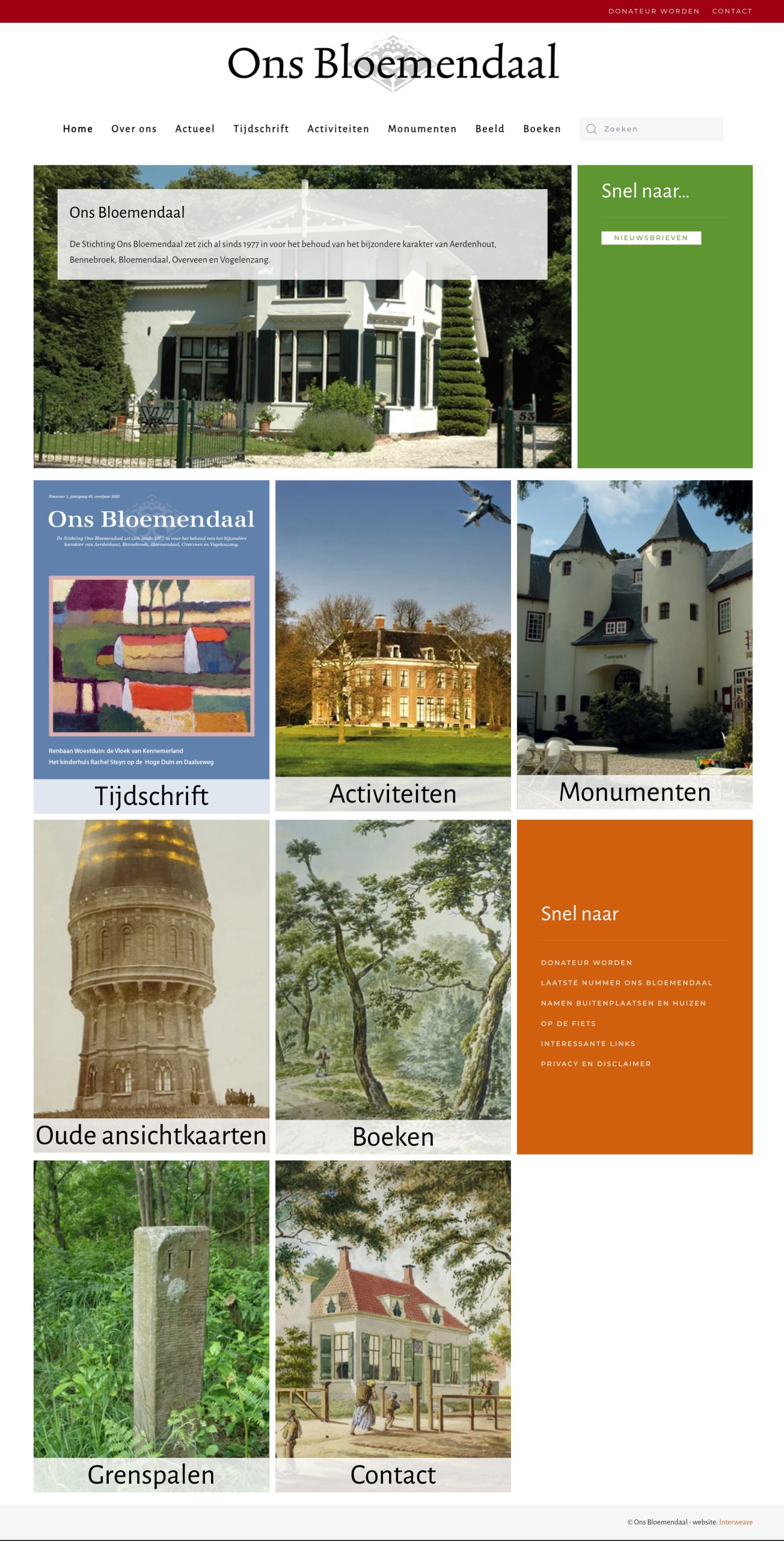 Alweer enige tijd geleden is de nieuwe website van Stichting Ons Bloemendaal online gegaan. Deze stichting zet zich al sinds 1977 in voor het behoud van het bijzondere karakter van Aerdenhout, Bennebroek, Bloemendaal, Overveen en Vogelenzang. Op de website is uitgebreide informatie te vinden over de activiteiten die worden georganiseerd. Daarnaast is er een uitgebreid online overzicht van monumenten binnen het gebied, relevante ansichtkaarten en boeken. Uiteraard kan er worden gezocht binnen deze onderwerpen. De backup wordt beheerd door diverse vrijwilligers en daar is het ook op ingericht. Iedere beheerder krijgt alleen toegang tot de voor hem of haar relevante onderwerpen.