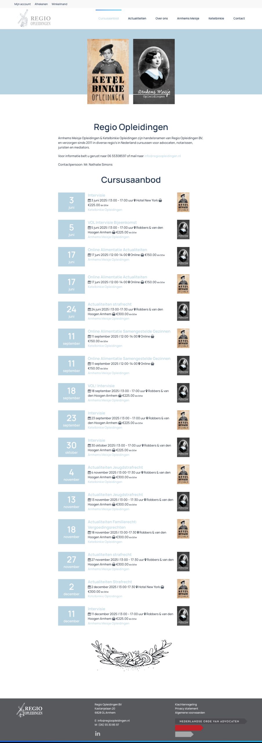 Afgelopen week is de nieuwe website van Regio Opleidingen online gegaan. Regio Opleidingen verzorgt sinds 2011 in diverse regio’s in Nederland cursussen voor advocaten, notarissen, juristen en mediators. Zij doen dit onder de naaam Arnhems Meisje Opleidingen voor cursussen in het oosten van Nederland en onder de naam Ketelbinkie Opleidingen voor cursussen in het westen van het land. Op de website is uiteraard een overzicht van alle aankomende cursussen en de mogelijkheid tot het online aanmelden. Daarnaast is er informatie van alle docenten, actualiteiten en een stukje historie.
