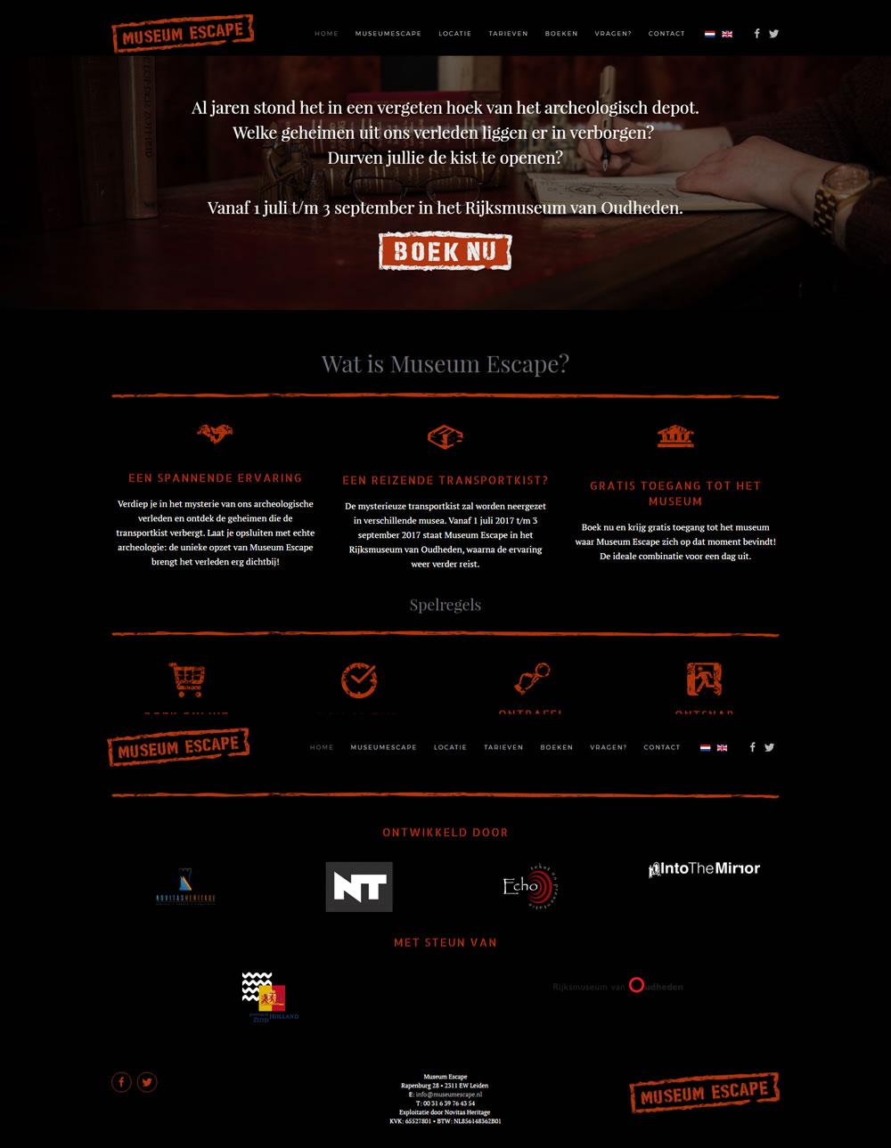 Gisteren is de website van Museum Escape online gegaan. Al jaren stond het in een vergeten hoek van het archeologisch depot. Welke geheimen uit ons verleden liggen er in verborgen? Durven jullie de kist te openen? Vanaf 1 juli t/m 3 september in het Rijksmuseum van Oudheden.Verdiep je in het mysterie van ons archeologische verleden en ontdek de geheimen die de transportkist verbergt. Laat je opsluiten met echte archeologie: de unieke opzet van Museum Escape brengt het verleden erg dichtbij! De mysterieuze transportkist zal worden neergezet in verschillende musea. Vanaf 1 juli 2017 t/m 3 september 2017 staat Museum Escape in het Rijksmuseum van Oudheden, waarna de ervaring weer verder reist.Boek nu en krijg gratis toegang tot het museum waar Museum Escape zich op dat moment bevindt! De ideale combinatie voor een dag uit.